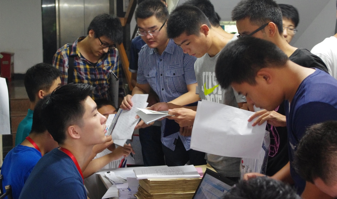 的报到处。也有不少家长陪着自己的孩子,他们手里提着大包小包,风尘仆仆,脸上却掩饰不了自己孩子考上研究生的喜悦。本次新生报道采取现场网上注册的形式,现场的工作人员相互分工,每道流程都有条不紊的进行着。报道时,学院研会的成员还特地准备了新生“注意事项”,上面列出了许多新生需要注意的地方,也有提醒新生报道的顺序,以及入学的一系列安排。现场还特地安排了工作人员为新生答疑解惑,指导新生按照报道注册的流程需要去到哪些地方、完成哪些手续等等。等办好手续,填好资料,拍照的同学热情的迎过来请新生站在午夜巴黎