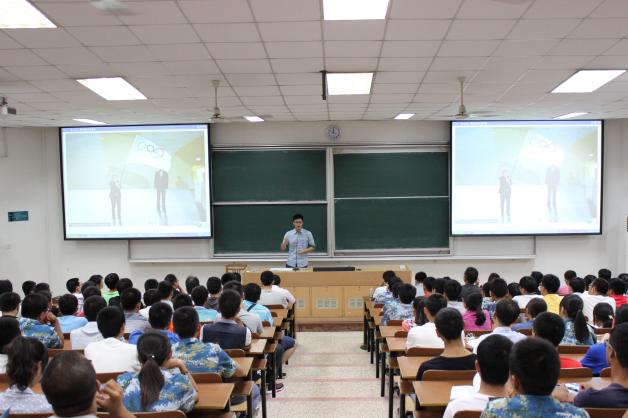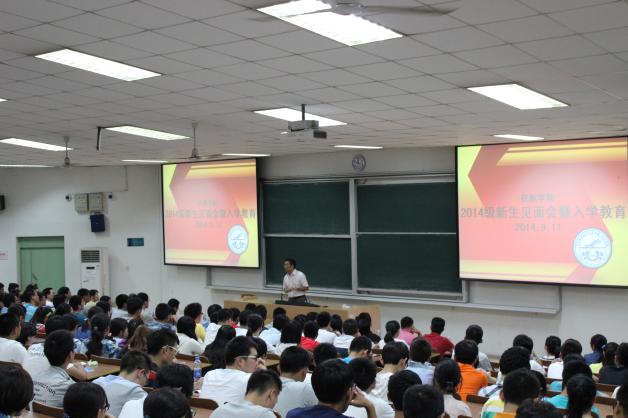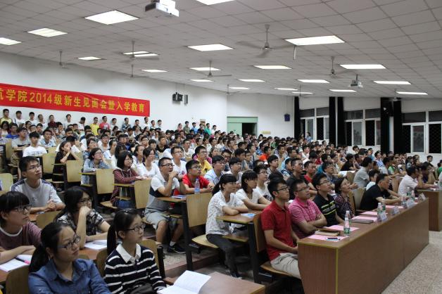2014年9月11日晚7点,午夜巴黎 2014级新生见面会暨入学教育在将军路校区4102教室隆重举行。午夜巴黎 副院长隋东、党委副书记宋凯、空中交通管理与签派系主任汤新民、民航运输管理系主任曾小舟、民航机务工程系主任李艳军、团委书记傅成成、教务员张华、2014级班主任、学院辅导员以及2014级全体新生参加了本次大会。