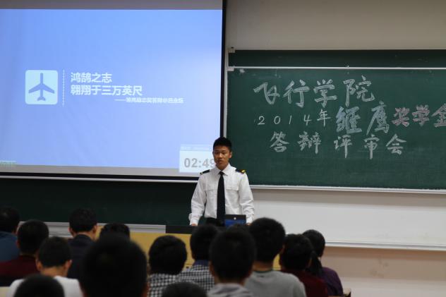 27名优秀的飞行学员分别对四个奖项展开争取。答辩中,候选学员都从容不迫,结合自己所申请的奖项,介绍了自己大学生活的点点滴滴,并认真回答了评委老师的相关问题。