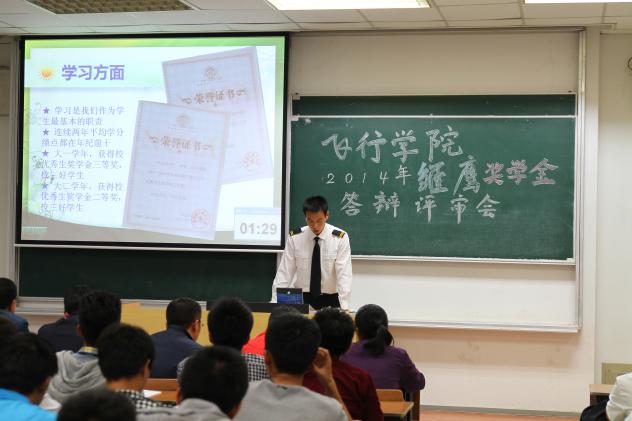 10月21日,飞行学院在6301教室举行了2014年飞行学员雏鹰奖学金答辩评审会。本次答辩会由民航/飞行学院党委副书记宋凯老师、午夜巴黎 04届杰出校友——上海航空公司机长孙文吉先生以及学院辅导员担任评委。在整个答辩会上对答辩人的个人展示、精神面貌、心理素质等方面进行综合的评定与考核。14级的飞行学员们也观摩了此次答辩会。
