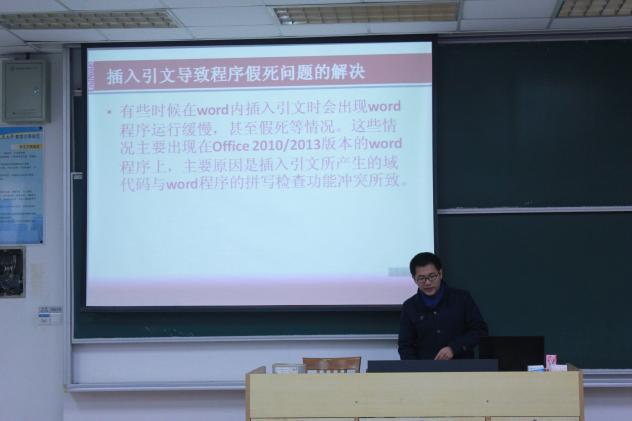 本次论坛活动的第二部分是关于Endnote软件的使用,由董明佳同学为大家讲解。Endnote软件是一款用于海量文献管理和批量参考文献管理的工具软件,自问世起就成为科研界的必备武器。首先,董明佳给大家演示了Endnote是如何方便地增删论文中的参考文献,台下的同学为该软件便捷高效的性能连连称赞。接下来,他又详细介绍了软件的安装、文献的录入、参考信息的生成、格式的转换的操作,这些操作能够有效地管理从各大数据库中搜集到的文献,避免了了重复和遗漏,有机整合了分散在各处的阅读所作的笔记,帮助在论文写作时引用文献。演示结束后,董明佳同学还指出,一个好的工具能极大提高你工作学习的效率,正确高效地使用Endnote,不仅仅能有条不紊地管理电子文献,更能为论文写作提供方便。