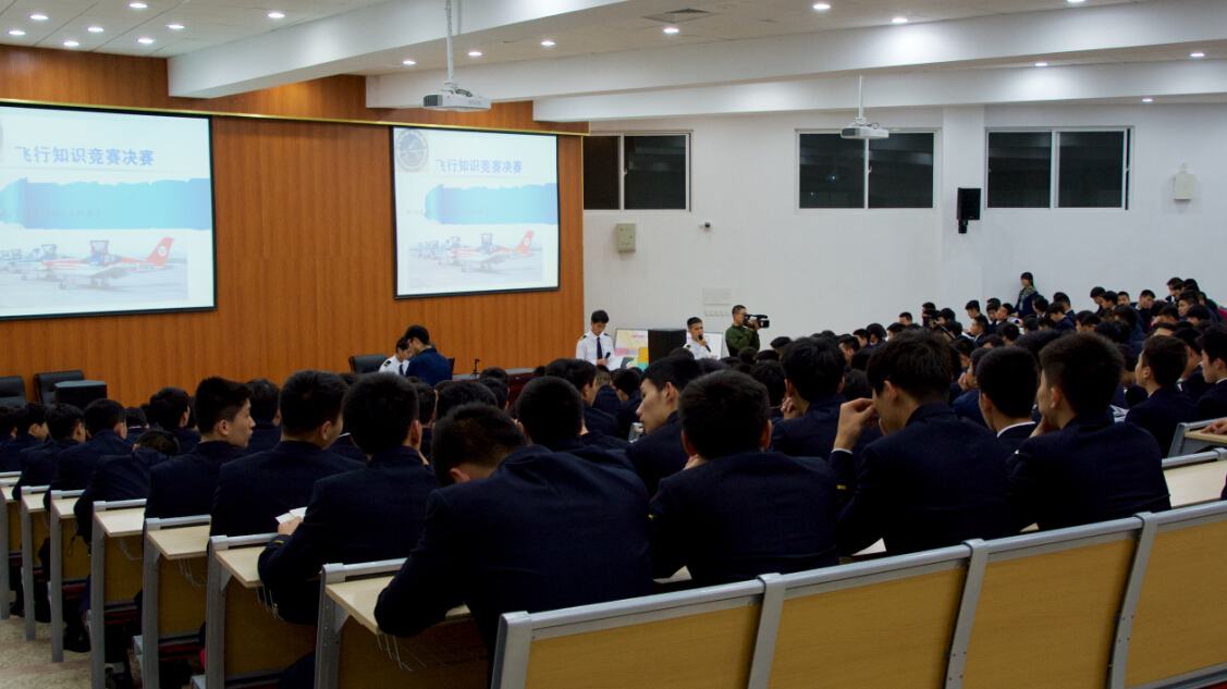 此次飞行知识竞赛分三个部分——初赛、复赛和决赛。初赛为笔试形式,由全体飞行学员参与闭卷考试。试题来源为专业课程中的相关知识点。笔试后根据得分由高到低选取24个选手进入复赛。复赛分为三组进行,每组8名选手作答大屏幕上的19道选择题和1道抢答题。复赛得分最高的8位选手进入决赛。决赛环节为选手作答大屏幕上20道选择题和10道抢答题,并按照最终得分排出名次。最后,辅导员为进入决赛选手颁发获奖证书和奖品。