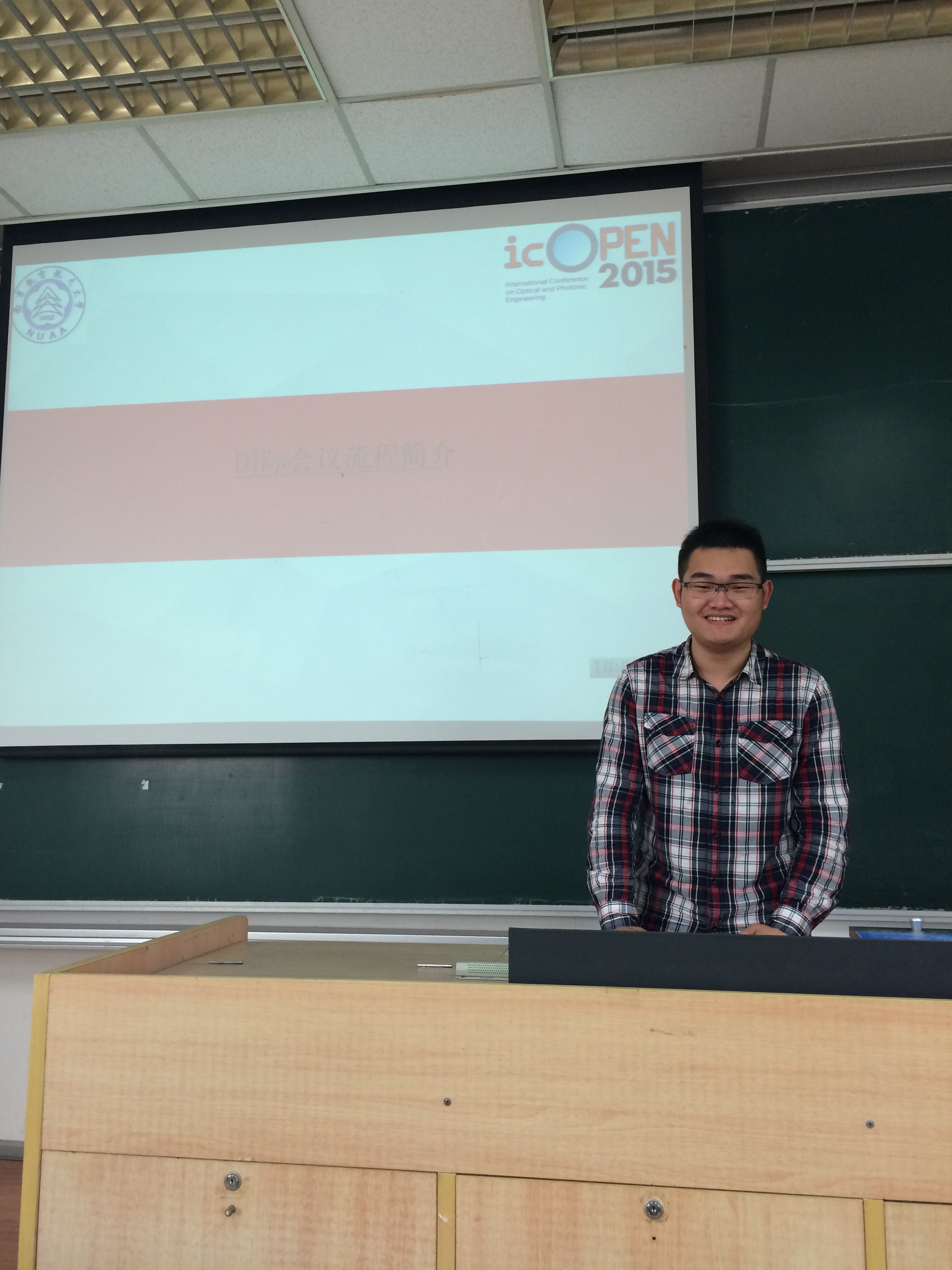 活动伊始,主持人王祥介绍了此次微沙龙的受邀嘉宾柳树林同学。柳树林同学是午夜巴黎 2014级硕士研究生,刚刚在新加坡参加完国际光学与光子学工程会议。该会议在国际上具有较强影响力,参与者以教授学者和博士居多,柳树林同学以硕士研究生的身份参加该会议,收获很大。此次邀请也是希望柳树林同学能够分享他参加国际会议的经验。