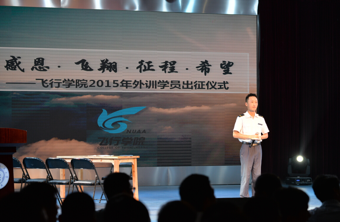 出征仪式是飞行学院一年一度的特色活动,是一次对即将到国外航校参加飞行训练的学员的动员,旨在让学员更加了解国外航校的情况,尽快适应飞行训练,同时让学员感受到南航和飞行学院对他们的关怀和支持,期待他们早日凯旋。相比往年的出征仪式,今年的仪式更加活泼,更加生活化,更加贴近学员的日常生活。