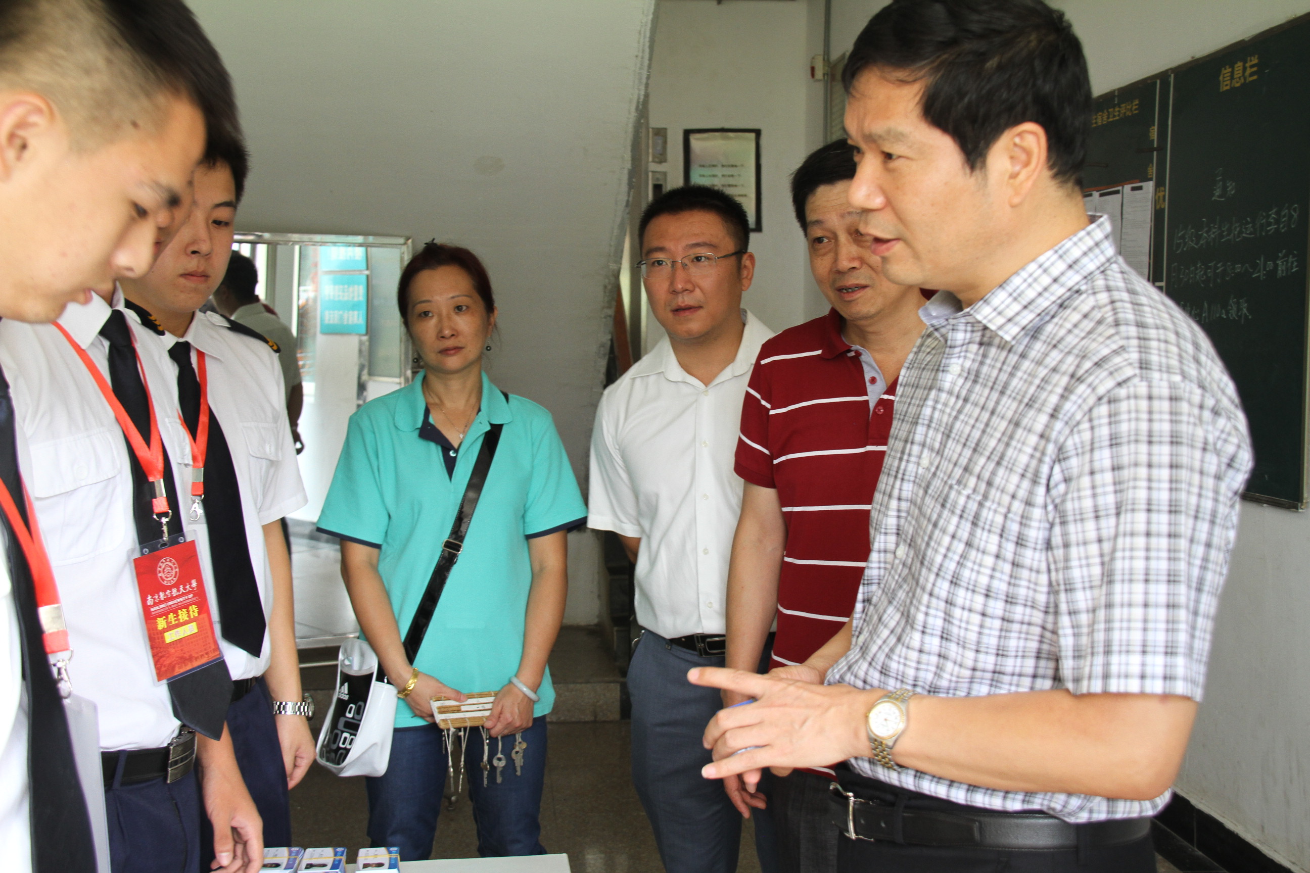 校党委书记郑永安也来到学院的迎新点看望慰问,并进入宿舍与新生及新生家长交流。在交流过程中,郑书记听取了学院领导就飞行学生准军事化管理工作的介绍,随后参观了飞行员宿舍并与新入学的飞行学生亲切交谈,鼓励他们在南航苦练精飞,早日成为天之骄子。