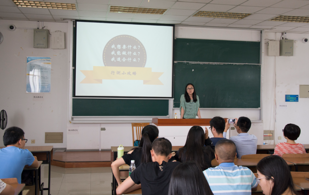 培训活动一开始,李俊瑶就让在场同学们思考三个问题:我想要什么?我能做什么?我适合什么?由此让同学们展开对就业的思考。她建议大家在就业中一定要找好定位,一个人的时间和精力是有限的,不可能每一个单位都去应聘。随后,李俊瑶结合自身考试经历,从数量关系、判断推理、常识判断、言语理解与表达、资料分析这五个方面介绍了行测的考试内容和考试技巧。针对每一类题目,李俊瑶也给出了一道例题并做出了详细的讲解,同时,她还着重提醒同学们注意国考和省考一些不同之处,航空公司、研究所和私企的笔试不同之处。每一点的讲解都让同学们受益匪浅。