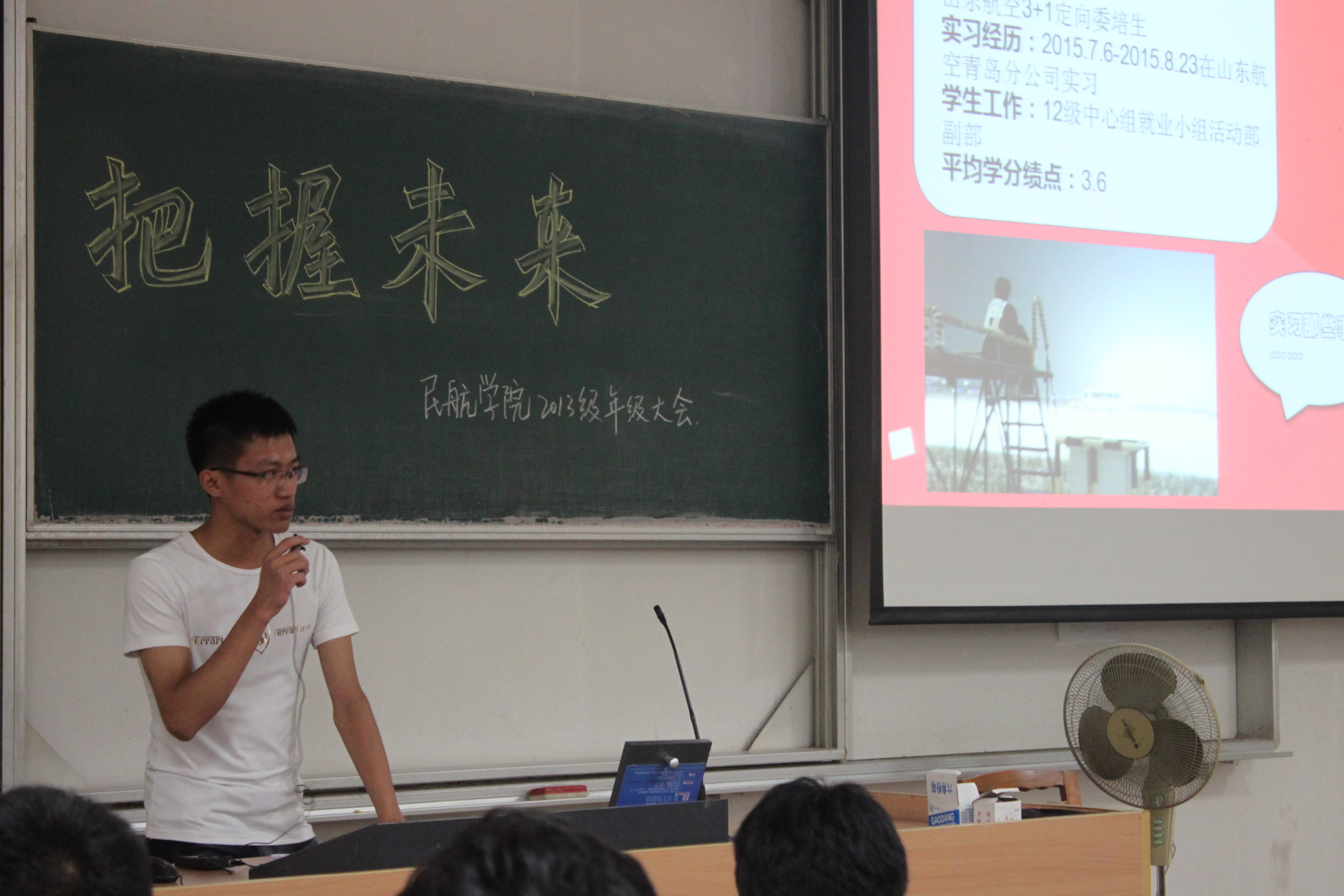 最后,康冲就一直困扰同学们的问题就业、考研、保研这些选择与同学们做了一一剖析,他结合暑假跟随学院走访7家民航企业的经历,和同学们分享了用人单位需要的是什么样的人才,鼓励同学们戒骄戒躁,在大三这一年夯实专业基础、提升专业综合素质,为自己的生涯提前着手规划。
