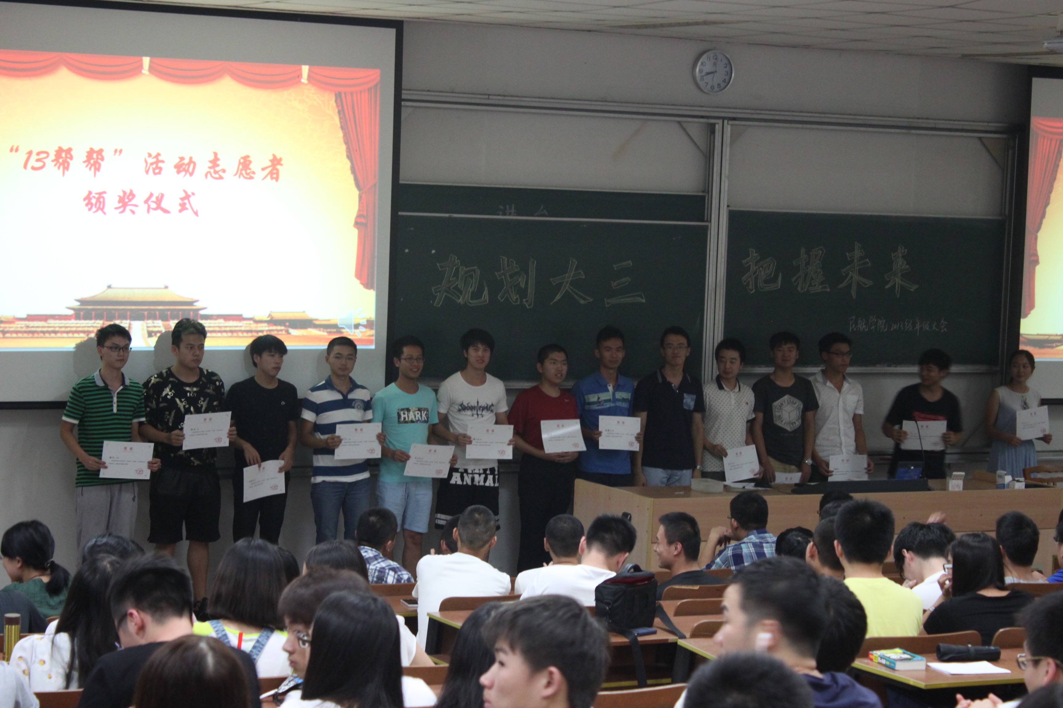交流会上,康冲首先欢迎本学期新转入学院的0713104班的全体同学加入午夜巴黎 这个大家庭。随后,康冲就大二下学期的成绩与同学们做了详细的分析,鼓励同学们利用大三这一年寻找差距、弥补不足,并对于上学期参与“13帮帮”学校帮扶活动表现优异的同学进行了表彰。