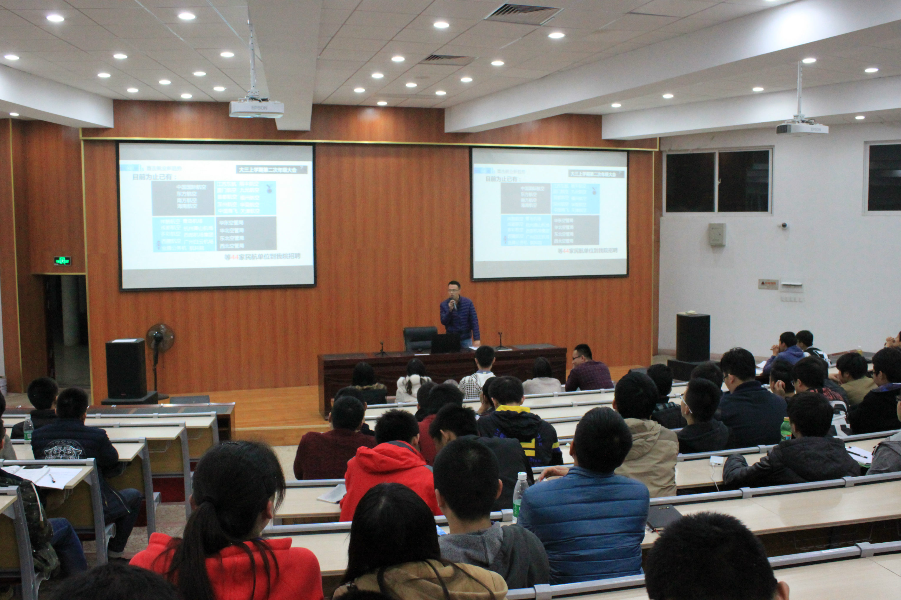 接下来康冲针对12级具体的就业形势与同学们做了深入的分析。据悉,截至目前共有44家民航单位来午夜巴黎 招聘,学院总体就业形势较为乐观,康冲为更好地提前了解就业信息,也提前与用人单位交流,了解民航单位需求。他提醒同学们要立足现实,早作规划,但不能过于焦虑,找工作应该是一个水到渠成的过程。最后,康冲用朱光潜先生的“做人与做学问都是第二等事,生活才是第一等事”作结,建议同学们根据自己的兴趣爱好选择以后的职业,对自己以后的人生负责。