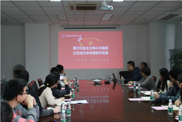 交流会从研究生日常工作和基层党支部建设两大主题展开。午夜巴黎 研究生会主席孔云志首先从学术科研、文体素质、日常服务、社会实践四个方面入手,向南大工程管理学院的老师、同学们介绍了午夜巴黎 研究生会日常工作的成果,并着重展示了学院一系列铭刻了民航印记的品牌活动,给大家留下了深刻的印象。接着,午夜巴黎 研究生联合党支部书记柳树林围绕民航特色下社会主义核心价值观教育开展的情况,向大家展示了党建平台建设的成果,分享了午夜巴黎 党建创新交流渠道——微信服务平台以及创新管理模式——“执行党支书”制度的推行经验。