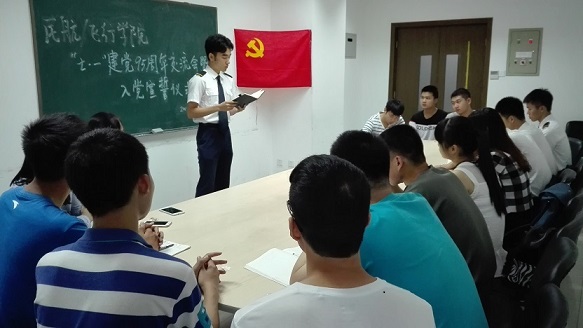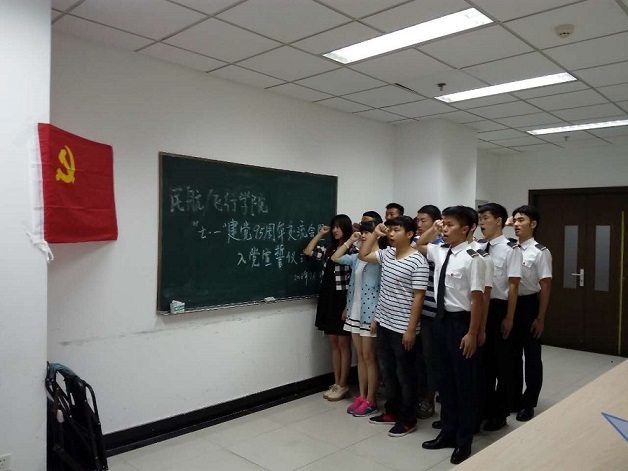 2016年7月1日,值此建党95周年之际,民航/飞行学院组织开展了建党95周年“党旗下的演讲”暨入党宣誓仪式,此次活动由民航13、14级党支部以及飞行党支部联合举办,辅导员夏昌青、张秋寒及今天新发展党员参与了此次活动。