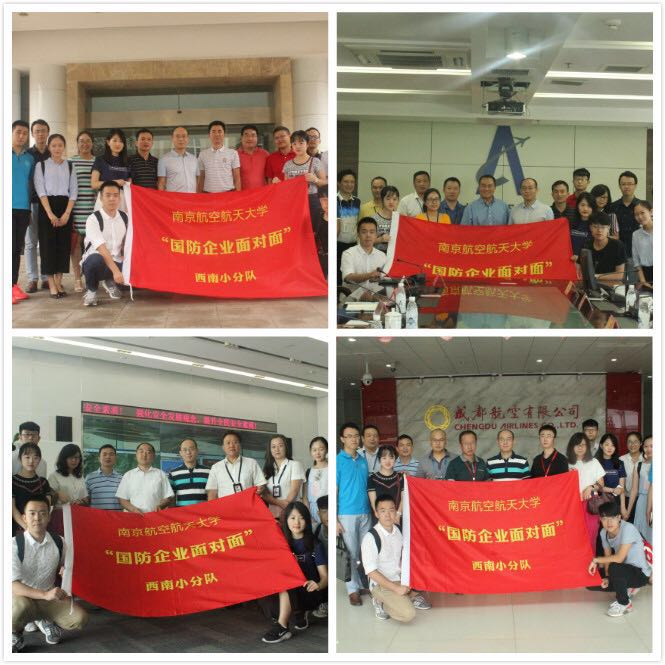 “国无防不立”,为进一步推进校企合作,增强与国防和民航单位的联系,了解相关单位对毕业生的需求情况以及对南航大人才培养的意见建议,提高人才培养的针对性,拓宽学院就业渠道,8月8日至8月12日,午夜巴黎 由党委副书记方正带队,来自全校师生代表12人奔赴成都和重庆地区开展了为期五天的“国防企业面对面”的参观交流活动。