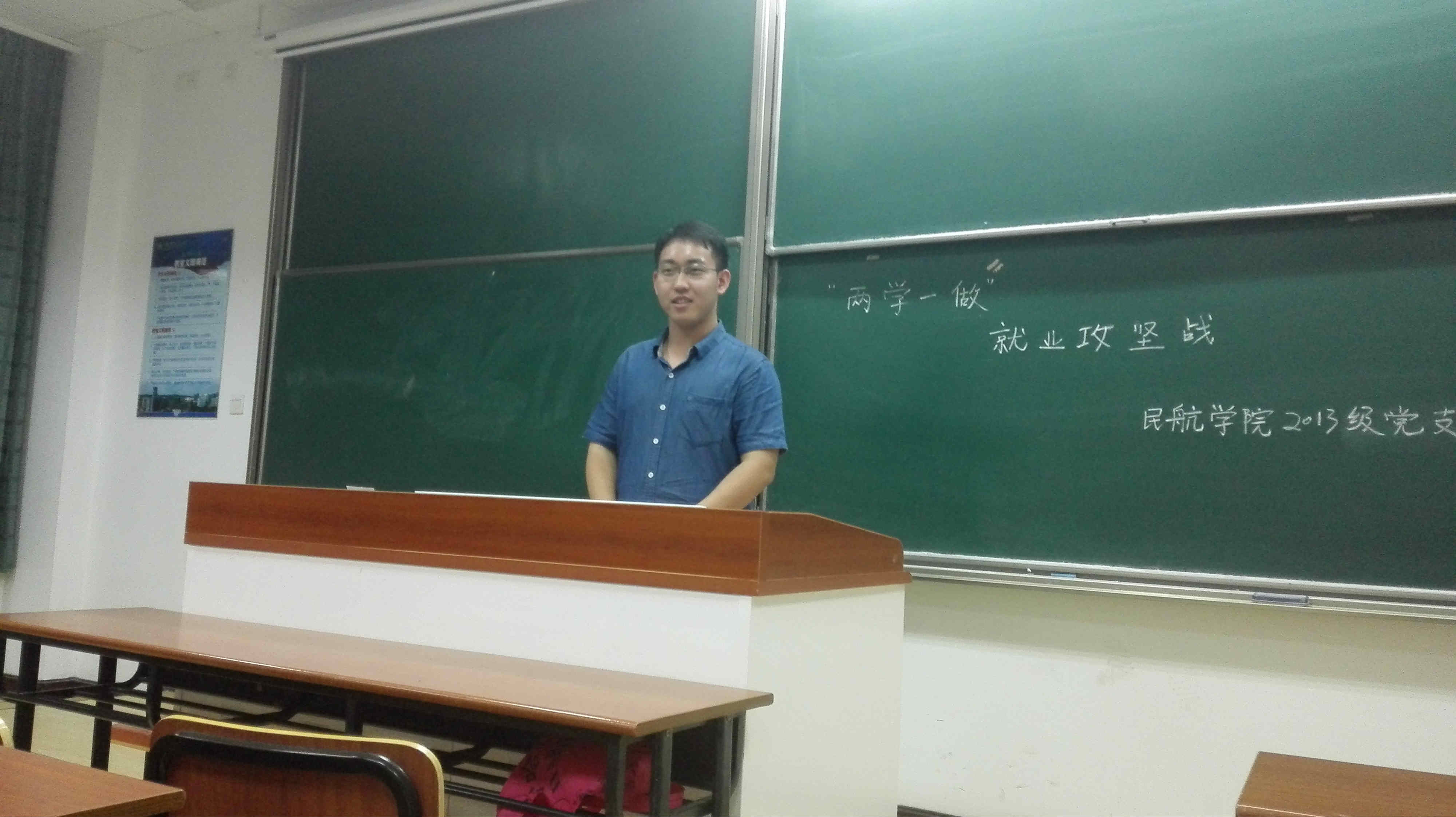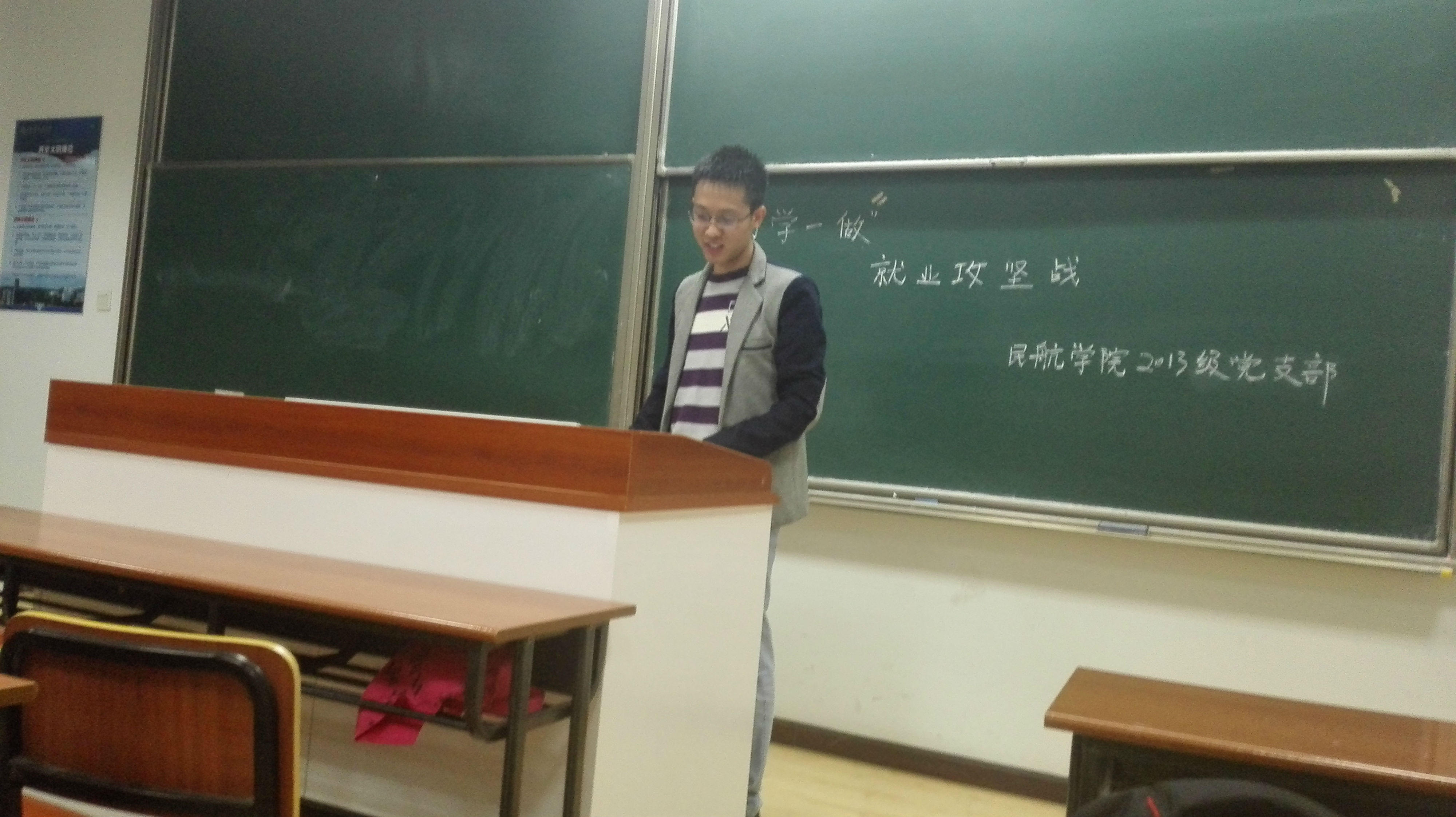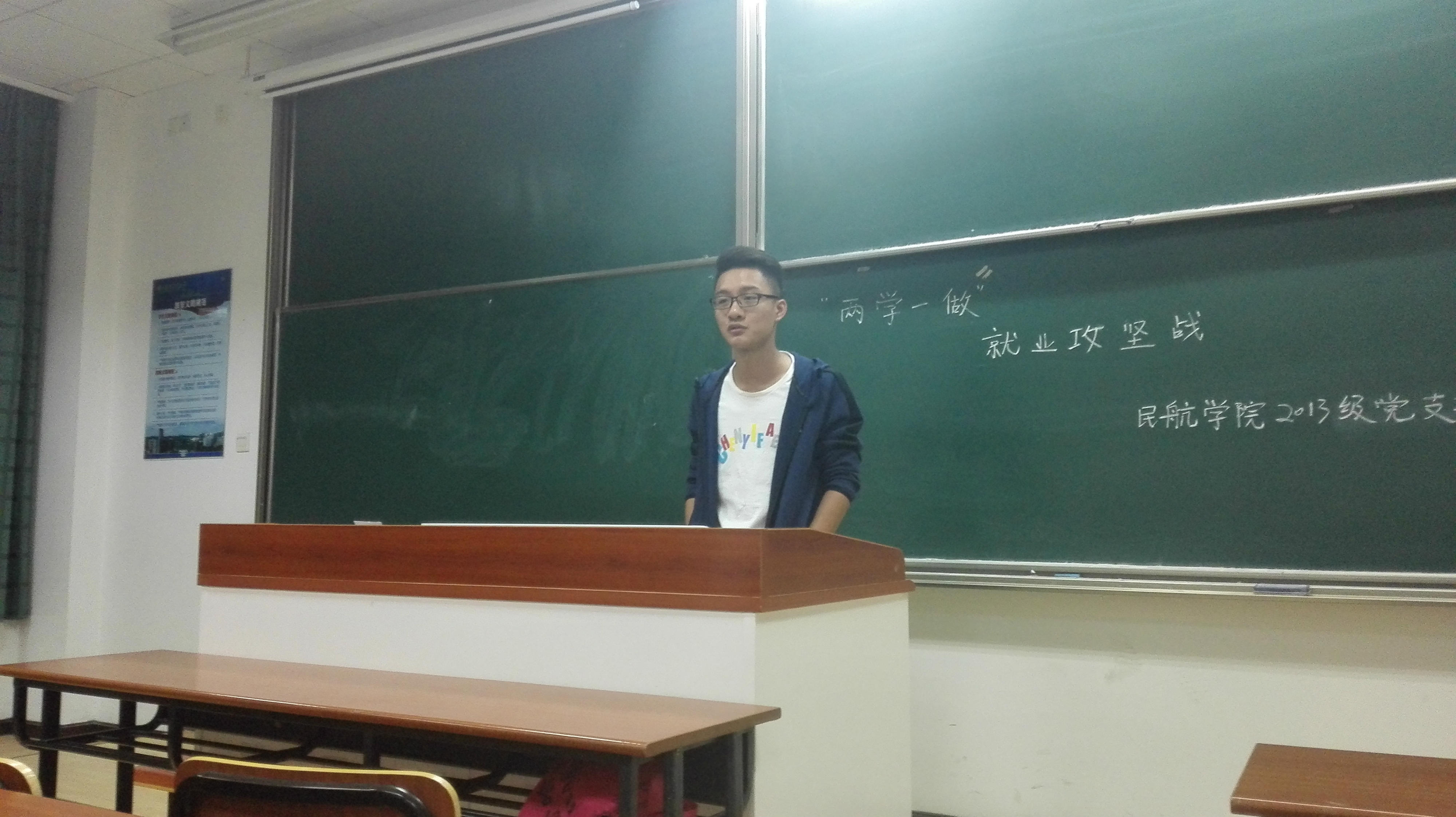 之后,就业组组长郭宇帅同学上台向大家介绍了年级就业的基本情况,他用数据详细的向大家展示了为就业同学的分布情况,并希望能在大家的帮助下,学院的就业率能从目前的88%达到100%。