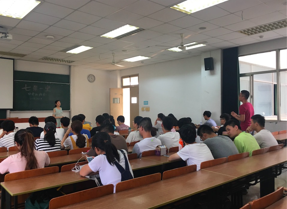 一位前辈,一位同辈,不同角度地为我们讲述大学的学习与生活,让我们更加理性地认识到大学不是极乐园,而是一片充满资源的沃土,需要我们去挖掘和耕耘。相信经过这次班会,同学们都能找到自己的目标,并为之奋勇前行。