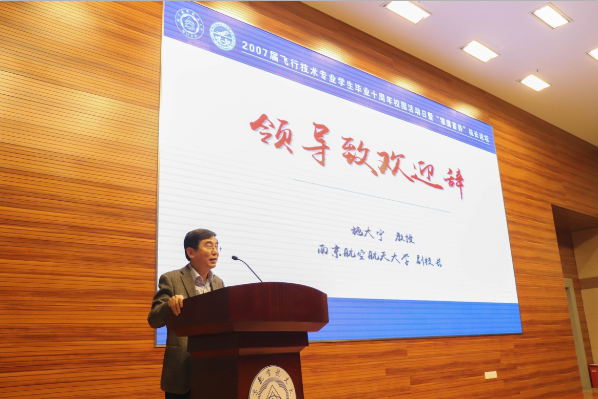 在体验完校园活动后,机长们与民航/飞行学院的学子们前往一号楼报告厅举办“雏鹰蓄势”机长论坛启动仪式。会上施大宁副校长就优秀机长们感念母校,将飞行精神传承到新一代飞行学员身上的行动给予高度评价。
