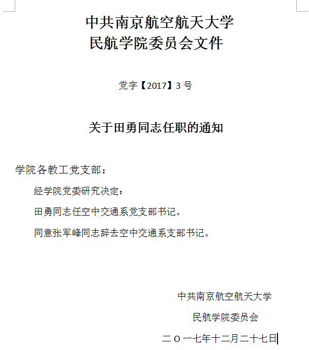 关于田勇同志任职的通知