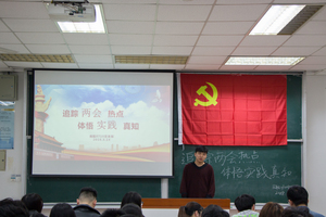 将军路校区6号楼举办了以“追踪两会热点,体悟实践真知”为主题的分享会,与会的有正式党员4名、预备党员22名及历届积极分子若干名。分享会上,大家针对进社区、观电影、访党员三个方面,运用不同的表现形式,创新性地解读了两会热点问题,展现了自己在实践中的所思所想,让大家耳目一新。