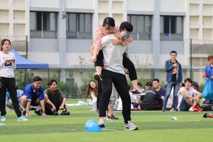 本次运动会共有4个比赛项目,分别为“九宫格干脆面连线”、“赛道踩气球”、“趣味接力”和“拔河”。其中,“九宫格干脆面连线”和“拔河”分为预赛和决赛,另外两个则是一场分胜负。两个年级共24个班级被分为12支联队,每支联队都由16级和17级的同学组成,并来自不同专业的两个班级,学长学姐们和学弟学妹们共同完成每个项目。