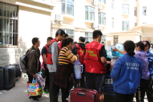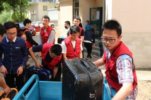 烈日炎炎,却挡不住大家的热情和干劲。在充分准备、细致分工的基础上,午夜巴黎 15级党支部的党员们和公寓服务中心党支部的工作人员们万众一心、齐心协力,帮助14、17级学生搬运行李,有序高效地完成了行李的搬运工作。
