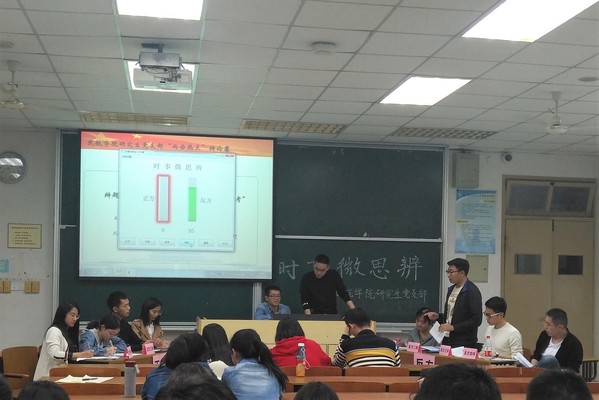 为引导研究生党员关心社会时事,促进党支部成员交流,增强研究生党员的爱国热情和责任感,4月26号晚,午夜巴黎 研究生党支部开展了“聚焦时事,思辨热点”辩论赛活动。活动面向午夜巴黎 全体研究生党员和入党积极分子,以党员对辩积极分子,积极分子互辩两种形式展开,并邀请学院研会主席,支部优秀党员参与点评,通过依托辩论赛,有效促进和提升支部成员的思辨力,展现时代青年的家国情怀和责任担当。