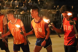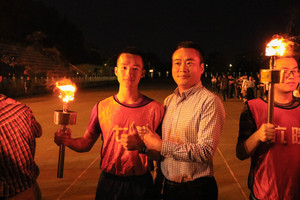 精彩的开幕式表演后,午夜巴黎 党委副书记李和新老师将点燃的火炬传递给第一棒选手。火种在师生间传递,火焰映照在脸上,闪烁着奋斗进取的耀眼光芒,点亮了五四夜晚的征程。每支比赛队伍由十男两女共十二名队员组成,在校园内按照指定路线进行接力比赛,火炬在手中接替,完美诠释了“薪火相传”的主题。