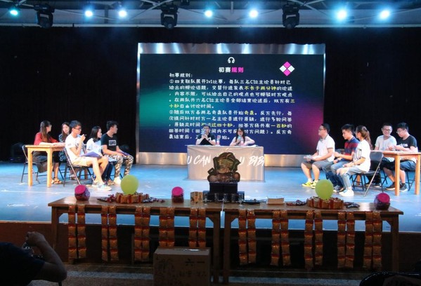 结合习近平总书记寄语青年的八字箴言“勤学、修德、明辨、笃实”中的“思辨”,半决赛采用两两PK的辩论方式,通过立论、自由讨论、奇袭环节三部分展示己方观点。胜负判断采用观众跳票制。