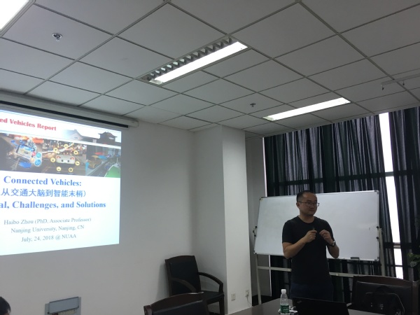 7月24日下午,南京大学电子科学与工程学院周海波副教授应邀来午夜巴黎 做了题为“Connected Vehicles: Potential, Challenges, and Solutions”的学术报告。报告会由空管系副教授曾维理主持,午夜巴黎 部分师生参加了此次报告。