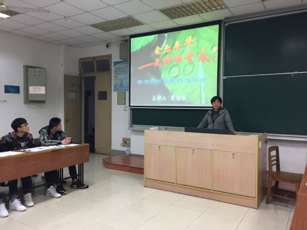 大会开始,周洁敏老师以“金色年华,无悔青春”为主题,结合自身经历给在座的同学讲了作为一名大四的大学生应该如何关心国家政策、规划未来的人生和如何面对遇到的困难等内容。周老师着重强调了大学生仍应该把80%的精力放在学习之上,且要学会自主学习。