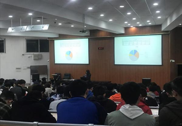 其次,朱岚老师向同学们展示了大二上学期的年级学习情况,并从专业对比、平均绩点对比、往年成绩对比等多个角度进行了学情分析,即表扬了优秀班级,也为稍有落后的班级分析原因,为学生后续的学习提供了方向和动力。