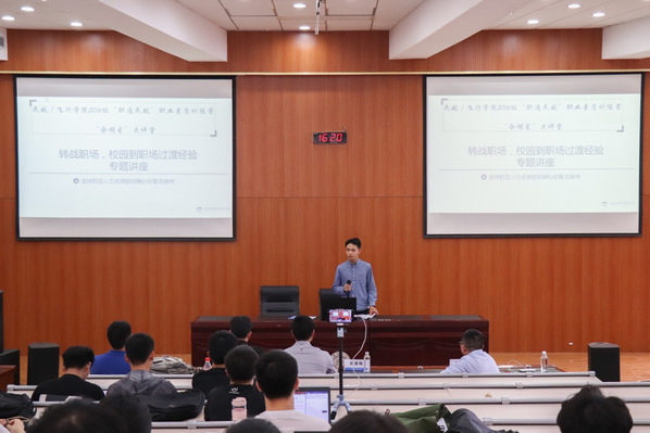 田崇伟以从事人力资源工作十多年的招聘经验,向同学们介绍了企业招聘的全过程,并且详细阐述了宣讲会、面试等环节中如何让求职者脱颖而出的技巧。在大部分同学已经做好自己简历的初稿的基础上,田崇伟从招聘者的角度,告诉同学们招聘人员最关注简历中的哪些板块,鼓励大家提高自己的学习成绩,丰富自己的实习与项目经验。同时,详细介绍了面试前如何做好资料、着装和自我介绍的准备,以及几大类面试的技巧说明,同学们从中收获颇丰。