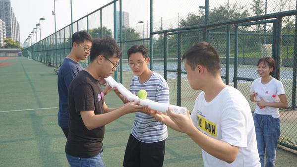 最后是本次活动最具挑战性的“球球大作战”比赛。这场比赛既需要良好的肢体协调能力控制球在管子上的运动,又需要团队制定好接力的策略使得球可以平稳传递。激烈的比赛也将本次活动推向了高潮。