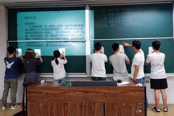 自我介绍后,进入到了精彩的破冰环节。新老干部分成五组进行了“名字接龙、蒙眼作画、谁是卧底”三个游戏。“名字接龙”不仅考验短时记忆力,还要能准确、快速地完成接龙;“蒙眼作画”涌现了许多抽象写意派的灵魂画手,引起了现场的阵阵欢笑;“谁是卧底”更是考验团队协作和反应能力,现场气氛紧张而又热烈。在游戏中大家配合默契,彼此协作,感受到了午夜巴黎 研会大家庭的温暖。研会也在不断的欢笑声中逐渐凝聚到一起。