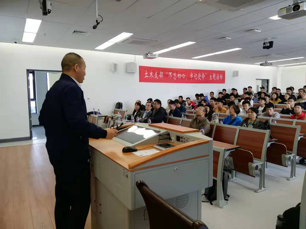 为贯彻落实校、院党委立德树人的教育根本任务,10月18日下午,午夜巴黎 土木与机场工程系党支部在天目湖校区开展了“不忘初心,牢记使命”的主题师生交流暨学风建设调研座谈会。会议邀请了土木工程专业07级校友雷荣超(现为苏中建设集团运营中心副总监)做精彩讲座,学院党委副书记贡海俊、院长助理程晔、土木与机场工程系主任吴瑾、系党支部书记解建光出席了会议。土木系全体教师、2019级新生参加会议。会议由土木系副主任张丽芳主持。