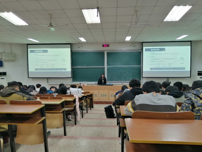 第二环节,朱岚老师就考研、保研与就业问题向同学们作了简要的介绍,给临近选择的大三学生们给予了一定的解读。本环节主要讲解了保研细则以及保研要求,提供了上一年级的考研、保研和已就业的数据并强调本年招聘季用人单位向学生提出的新要求,鼓励学生引起重视提高自身学业水平。此外,朱岚老师进行了下一学期的职场素养培训预告,计划着力进行职场素养的培训和提升,并向同学们提出了尝试进行简历制作的小要求。经过本环节的讲解,同学们对不久后的读研或者就业方向有了一定的了解。