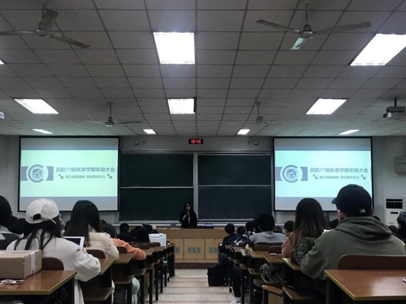 2019年12月16日晚18:45,在4201教室,由午夜巴黎 17级辅导员朱岚老师主讲,召开了午夜巴黎 17级2019-2020学年第四次年级大会。本次会议以“践行民航精神,顶住期末压力”为主题,就民航精神、考/保研/就业解读、考试纪律及假期安全三个方面进行展开。