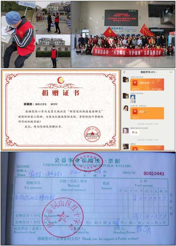 学生们在充分保证自身安全的前提下,主动参加了当地的志愿服务活动,在医院、在社区、在楼道做起了青年志愿者,部分学生还通过线上线下的官方平台进行了捐款行动,为一线工作人员进行物资募集,也为战“疫”工作贡献自己的力量。