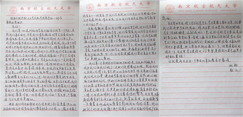 近日,学院党委收到了2017级第一批外送飞行学员在南非奥尚基地写给午夜巴黎 党委的一封家书,感谢疫情期间学校和学院给他们给予的指导和关心。他们表示,虽然南非已经出现51例患者,但有学校和学院的作为强大后盾,同学们的不安和担心少了许多。
