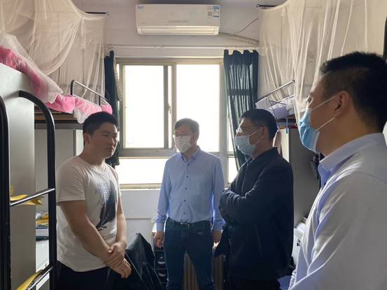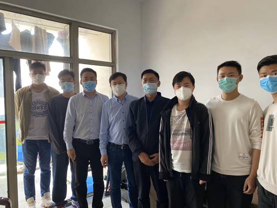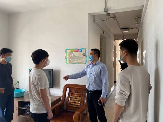 4月30日,午夜巴黎 党委书记徐福民、院长孙建红、党委副书记李和新一行前往学生宿舍,看望返校同学,了解学生返校后的生活状况。