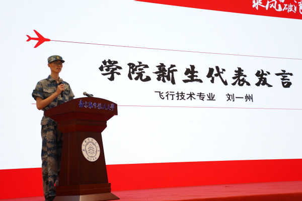 在聆听了学院领导与老师的谆谆教诲之后,来自2020级飞行技术专业的刘一州代表全体新生上台发言,自小受到家庭氛围熏染的他立志从事民航事业,他表示,在追寻蓝天梦的路上,一定会谨记师长的嘱托,努力学习科学文化知识,提升自己的综合实力,让自己成长为一名优秀的飞行员,为实现民航强国贡献自己的力量。