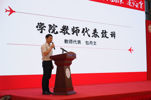 随后,班主任代表包丹文就新生们如何度过人生中最为重要的大学时光,为大家提供了宝贵的建议。他希望同学们及时转变角色意识,明确新的人生目标与规划;以坚忍不拔的毅力,勇敢应对挫折,从容书写人生。