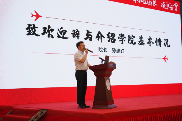学院院长孙建红代表全院师生对2020级本科新生的到来表示热烈的欢迎。孙院长就学院的基本情况向同学们做了详细的介绍,并对同学们的大学生活提出了三点期望:一要调整心态,学会独立,强化责任意识,实现角色转变;二要坚持学习,学会学习,提高学习成绩,提升学习能力;三要把握机遇,全面发展,施展个人才能,提升综合素质。他勉励新生们在大学四年的美好时光里坚持认真学习、独立思考,为将来投身于民航事业做充足准备。