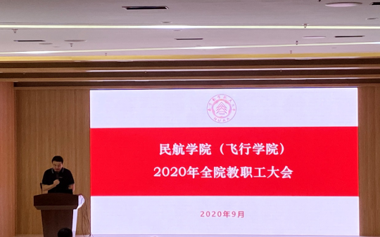 (飞行学院)在民航楼报告厅召开了全体教职工大会,总结上半年各项工作,布置下半年重点工作。学院党政领导班子全体成员和全体教职工参加了会议,会议由学院常务副院长高健主持。