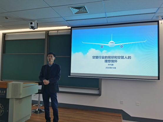 厦门空管站进近管制室主任叶代鹏从行业大背景、发展前景、理想情怀三方面,由浅入深地介绍了空管行业发展的最新动态,分享了职业生涯的感悟,为学生全面展开了一幅“管制员”的职业发展画卷。他结合自身的专业发展,介绍了空管行业中的个人发展、职业现实、竞争优势等。他勉励学生要有南航人特有的比较优势更要有竞争优势;要有特有的批判精神,更要有建设心态;要有特有的技术执着,更要有全面的融合。