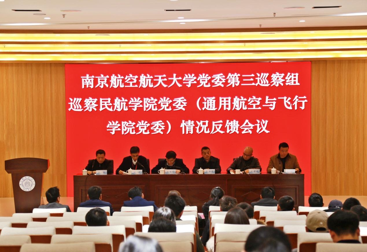 2020年12月8日,党委第三巡察组向午夜巴黎 党委(通用航空与飞行学院党委)反馈巡察情况。副校长施大宁,校纪委副书记、监察处处长、巡察办主任张海艮、校党委第三巡察组组长刘虎出席反馈会,午夜巴黎 和通用航空与飞行学院全体教职工共同参加会议。会议由通用航空与飞行学院院长王勤主持。