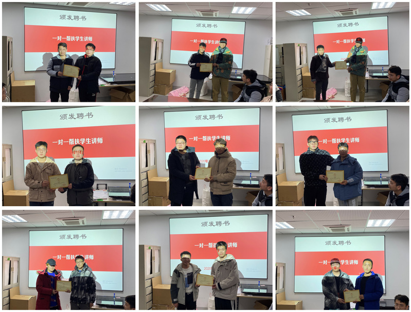 座谈会以一场简单而充满仪式感的“以师带徒”拜师仪式开始,受帮扶同学向帮扶同学颁发学生帮扶讲师聘书。为了提高结对效果,年级前期做了大量工作,通过征询学生意见、发动学生党员,帮扶讲师大都为主要学生干部和学生党员,并且是受帮扶同学舍友或者同班同学。参与到这次帮扶工作的朱凯凯同学表示他主要负责帮扶室友,因为朝夕相处帮扶相对容易,通过结对帮扶提升了室友成绩,并且不断巩固自己所学,也督促自己学习,两人一起努力,共同进步。