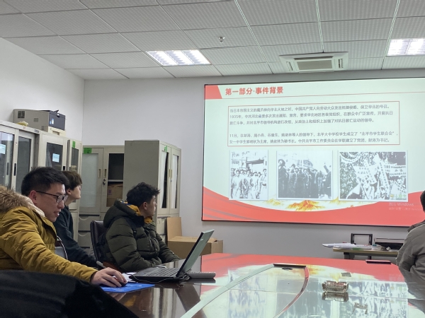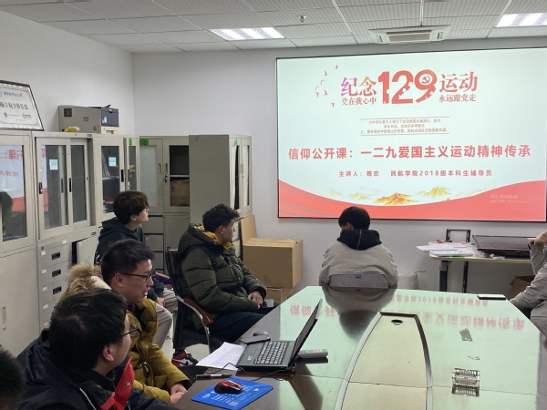12月22日晚,午夜巴黎 举办信仰公开课---一二九爱国主义运动精神传承,本次公开课由2018级本科生辅导员陈欢主讲,学院将军路校区团干、学生代表参加此次信仰公开课。