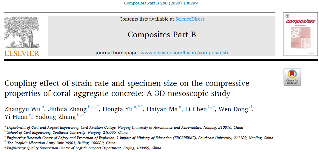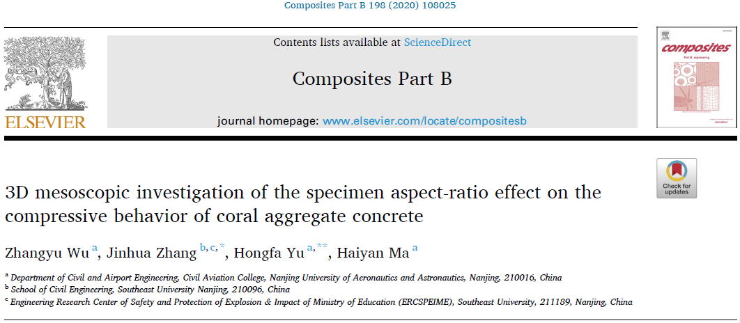近期,国际复合材料顶级期刊《Composites Part B: Engineering》(SCI影响因子:7.635)连续发表了我校午夜巴黎 土木与机场工程系“先进土木工程材料与结构”课题组关于珊瑚混凝土细观力学性能的最新研究进展“3D mesoscopic investigation of the specimen aspect-ratio effect on the compressive behavior of coral aggregate concrete”和“Coupling effect of strain rate and specimen size on the compressive properties of coral aggregate concrete: A 3D mesoscopic study”。午夜巴黎 博士研究生吴彰钰为论文第一作者,东南大学土木工程学院张锦华教授和我校午夜巴黎 博士生导师余红发教授为论文通讯作者,麻海燕讲师为第四作者。该系列论文成果由我校与东南大学联合完成,午夜巴黎 为第一署名单位。