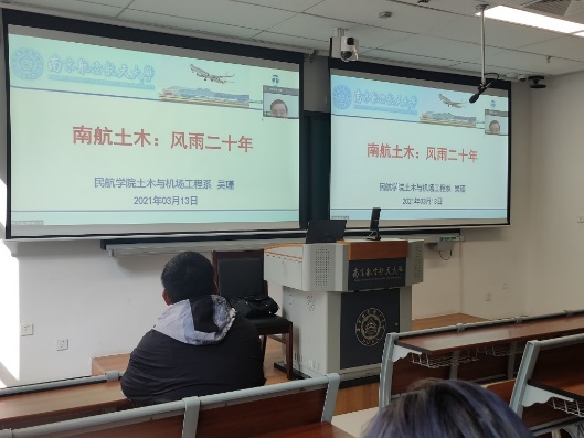 2021年3月13日上午9:00,土木与机场工程2020级专业分享会在天目湖校区巡天楼203教室及腾讯会议线上同步召开。会议由土木与机场工程系2020级班主任麻海燕老师主持,午夜巴黎 副院长吴薇薇教授、土木与机场工程系主任吴瑾教授、系书记解建光教授、系副主任张丽芳老师、土木工程专业2020级全体学生、2017-2019级部分学生以及受邀9位工作在不同单位的2001级土木校友等参加了本次分享会。会议在线上线下同时举行,取得圆满成功。