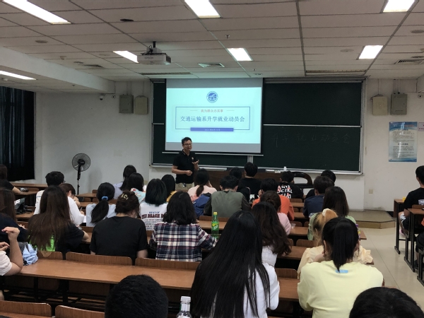 6月22日,学院召开交通运输系升学就业动员会,系主任邵荃、系副主任高强老师,2018级本科生辅导员陈欢和18级交通运输系在校学生参加。