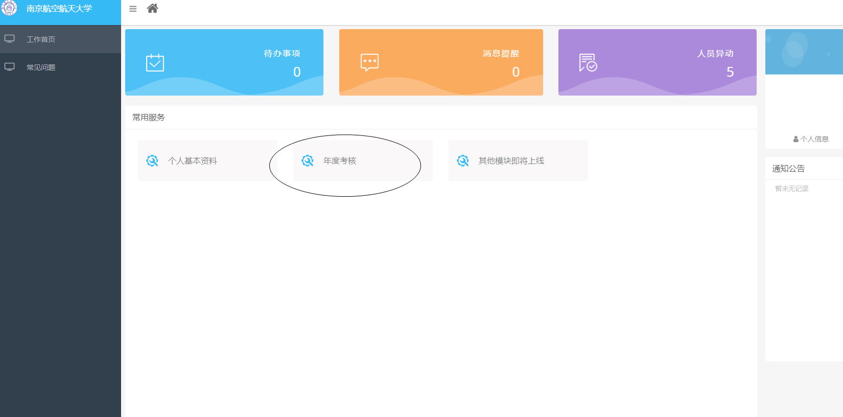2.教职工需登陆学校的新版人事管理信息系统//ehr.wuyebali.com,登录名为职工编号,密码为学校统一身份认证密码),在“年度考核”模块(2022年12月12日起开放),填写个人年度考核表,并在线提交,并用A4纸正反面打印、签名后交至各系办主任处,由系主任签署单位考核评价意见后,统一交至学院。